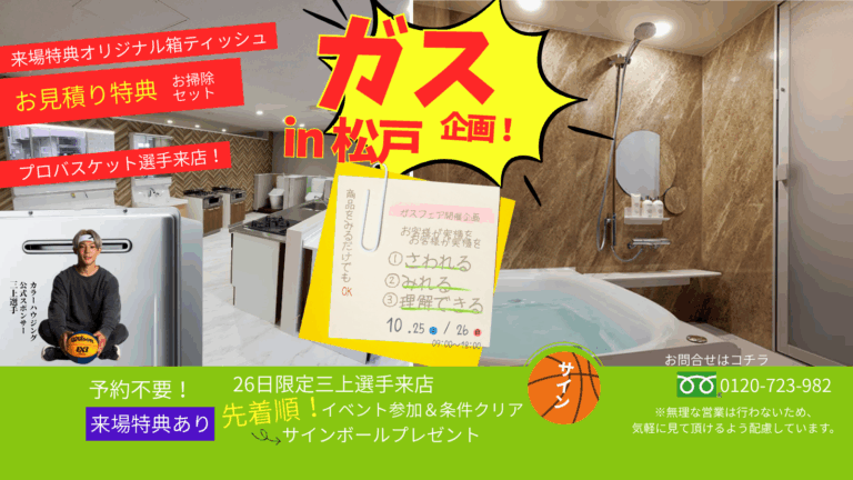 バスケ選手・三上選手が来店!ガスフェアで最新のキッチン・給湯器が試せる!