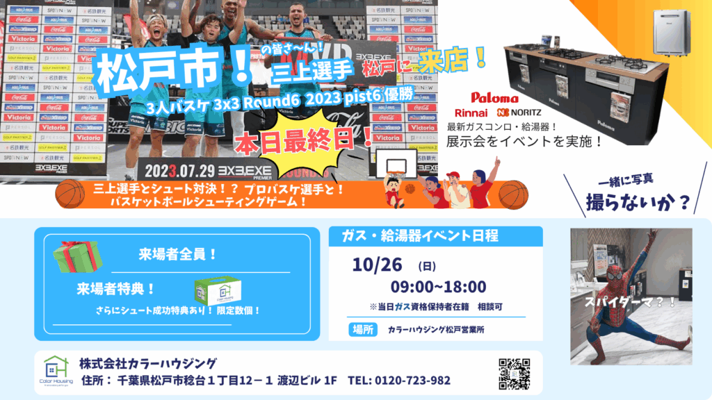 本日、10月26日(日)カラーハウジング松戸営業所にて開催中のガスフェアは最終日となります。
